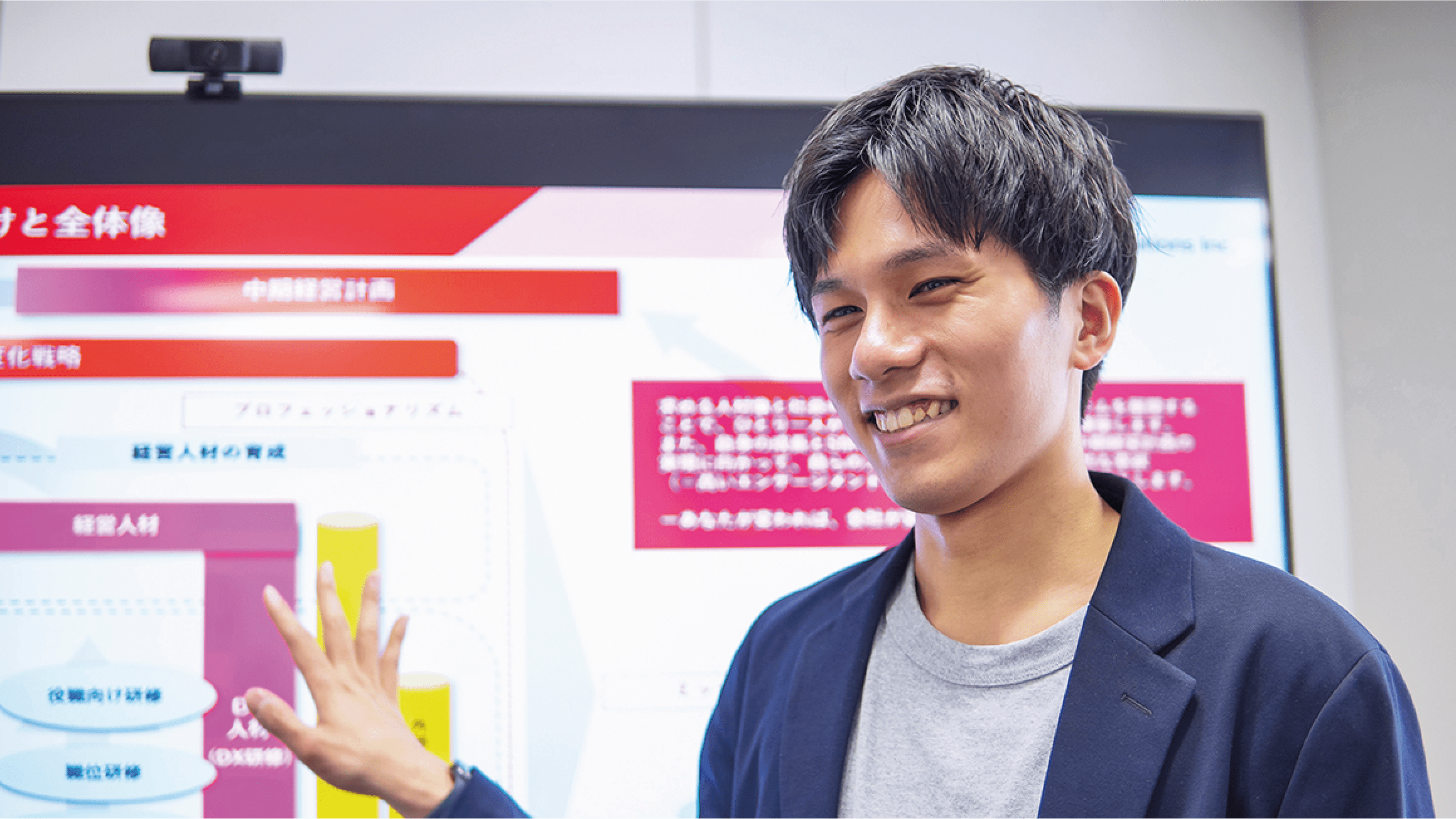 - 社員同士のつながりの強さは大きな魅力であり、働きやすさの原点になっていると思います。センターが変わっても、部署が変わっても、コミュニケーションのしやすさは変わりません。コンタクトセンターの業務では困っているお客さまに安心をご提供するホスピタリティが必要なので、その精神が社員同士の関係にも反映されているのかもしれません。また、研修制度の充実も魅力のひとつ。若手だけではなく、ユニットマネージャーになっても階層別の研修があり、現在は経営人材を目指すための研修を受けています。クライアントへのプレゼンテーションやファシリテーション能力、ロジカルな思考力を身に付ける講義など複合的な内容で、仕事にも活かせています。